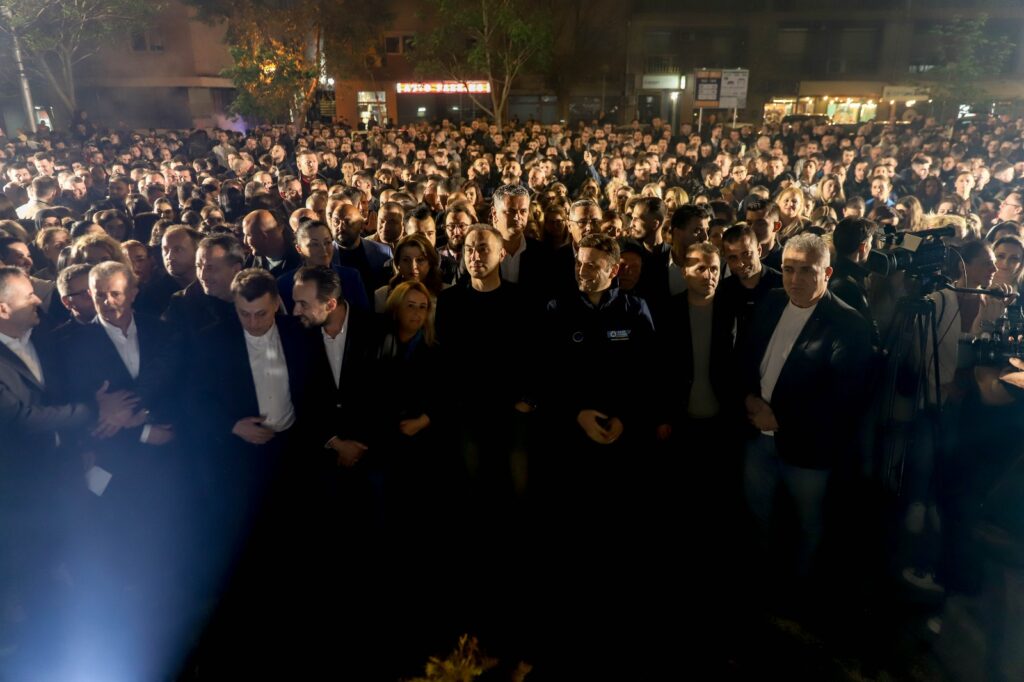 Front që po vizaton vijat e para të frontit në Çair kundër uzurpimeve dhe ndërtimeve pa leje kundër hajnisë, mashtrimit, tradhëtisë, Rusisë, VMRO, Levicës, Taravarit, Afrimit, Bilallit dhe Izetit. Ky Front Europian është Front që do i bëj ballë vijës së frontit të mbrojtjes së Marrëveshjes së Ohrit, të cilën e cënojnë. Sot dolën kundër badinterit që janë të arritura të UÇK dhe MO-së, adresa e këtyre porosive është nga VMRO, Levica, Rusia e Serbia. Kujt i shërbeni me porosi kundër Amerikës, Bujarit, UÇK, MO, kundër Ali Ahmetit. Bujar Osmani është kandidat që e përkrah Amerika, Europa e rajoni e Maqedonia e Veriut dhe këtij fronti mos i dil përpara se të shkelë, u shpreh para të pranishmëve, Grubi.