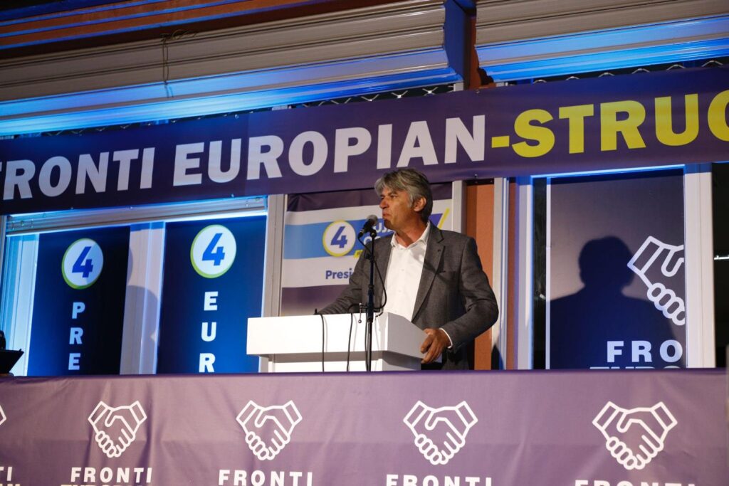 Musa Xhaferri në fjalën e tij tha se Fronti Europian nuk bën garë për t’i fituar të tjerët por garon me peogram të qartë antarësimin e vendit në BE dhe të mos mbahemi peng i LSDM dhe VMRO.
