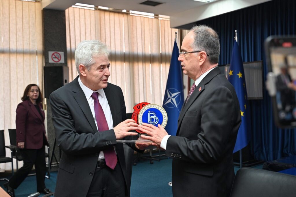 Kryetari i Bashkimit Demokratik për Integrim, Ali Ahmeti, pati kënaqësinë e veçantë që në selinë e partisë të mirëpresë Presidentin e Republikës së Shqipërisë, Sh.T. z. Bajram Begaj.