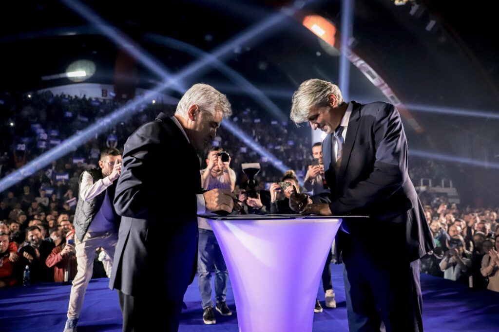 “Sot jemi dëshmitarë në lindjen e Frontit Evropian si një kapitull i ri në krijimin e një familje evropiane. Sot jemi të bashkuar për një të ardhme më të mirë, qëndrojmë si dëshmi se çfarë mund të bëjmë kur i tejkalojmë dallimet dhe bëjmë punë për të mirën e përgjithshme. Kjo sallë e mbushur sonte është Deklarata më e fuqishme se, kur bëhemi bashkë, nuk ka qëllim që nuk mund ta arrijmë”, tha kandidati për Presidenti, Bujar Osmani pas nënshkrimit të Marrëveshjes së Ziadin Selës dhe Ali Ahmetit për koalicionim në Frontin Europian.